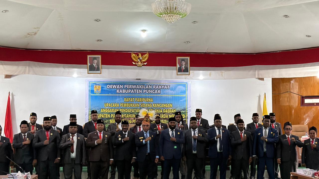 ILAGA-Pemerintah Kabupaten Puncak resmi menyerahkan Rancangan Anggaran Pendapatan dan Belanja Daerah (RAPBD) Tahun Anggaran 2026 serta lima Reperda Non APBD kepada DPRK Puncak, untuk dibahas sebagai usulan untuk penetapan APBD 2026, dalam Rapat Paripurna yang dibuka oleh Ketua DPRK Puncak Thomas Tabuni, serta dihadiri oleh Bupati Puncak Elvis Tabuni, di ruang sidang DPRK Puncak, Ilaga, 26 November 2025.