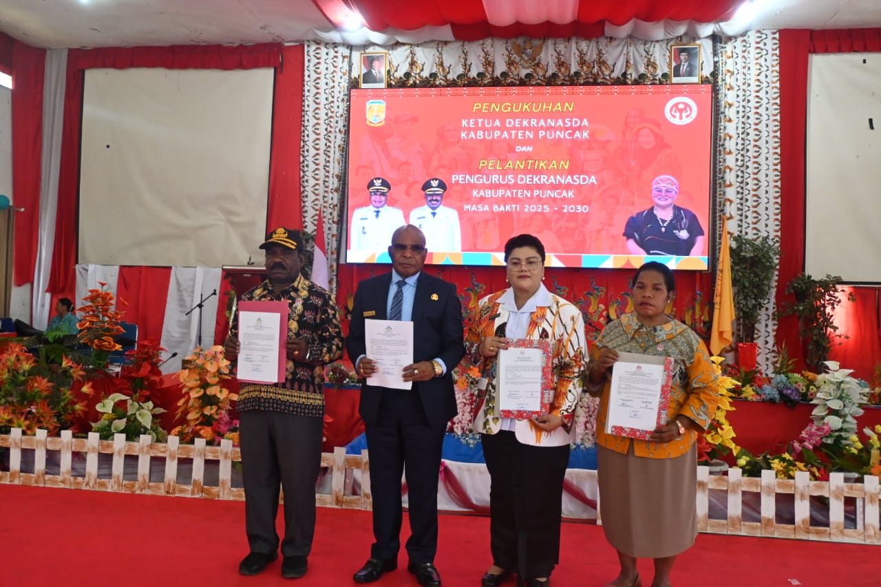 Bupati Puncak Kukuhkan Ny. Sujatinah Elvis Tabuni Sebagai Bunda PAUD, Ketua Dekranasda, dan Ketua TP Posyandu