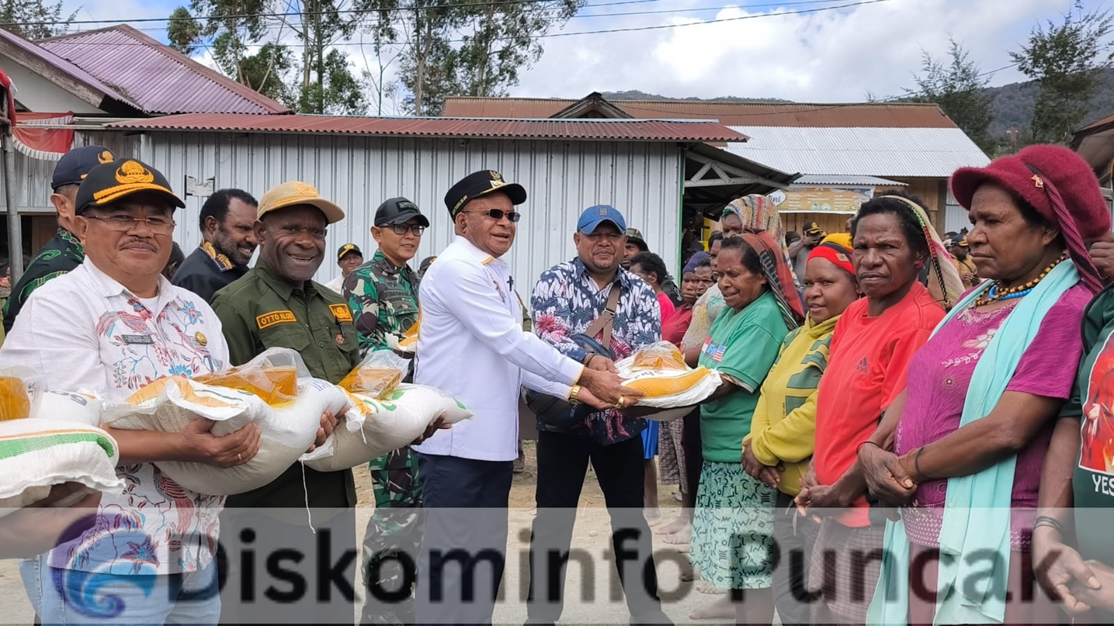 K-F: Bupati Puncak Elvis Tabuni menjawab media di sela-sela penyerahan secara simbolis bantuan beras dan minyak goreng kepada masyarakat di Kota Ilaga, Kamis, 22 Januari 2026.
