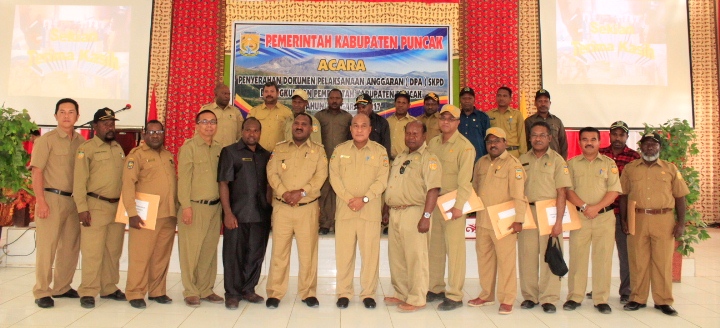 Foto bersama Bupati Puncak Willem Wandik, bersama dengan para pimpinan SKPD Puncak, usai penyerahan DPA.