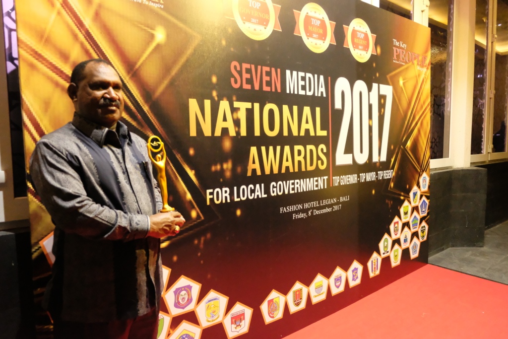 Bupati Puncak Willem Wandik,SE,M,Si, saat menerima penghargaan Top Regent of The Year 2017 bersama 25 Kepala daerah baik Gubernur dan bupati/walikota se- Indonesia di Hotel Fashion, Legian, Bali, Jumat (8/12/2017) malam.