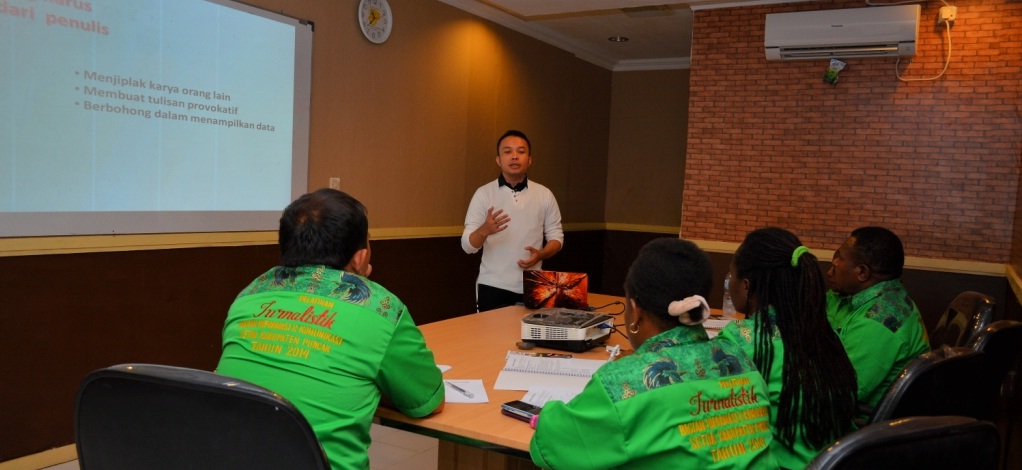 Ilaga (22/10/14), Bagian Informasi dan Komunikasi Sekretariat Daerah Kabupaten Puncak mengadakan pelatihan jurnalistik dan fotografi yang dilaksanakan pada hari Rabu s.d. Kamis tanggal 22 – 23 Oktober 2014 lalu bertempat di Café Barley Jl. Yos sudarso Timika Papua. . Sebanyak empat Staf Pegawai Negeri Sipil Puncak ikut dalam pelatihan tersebut.