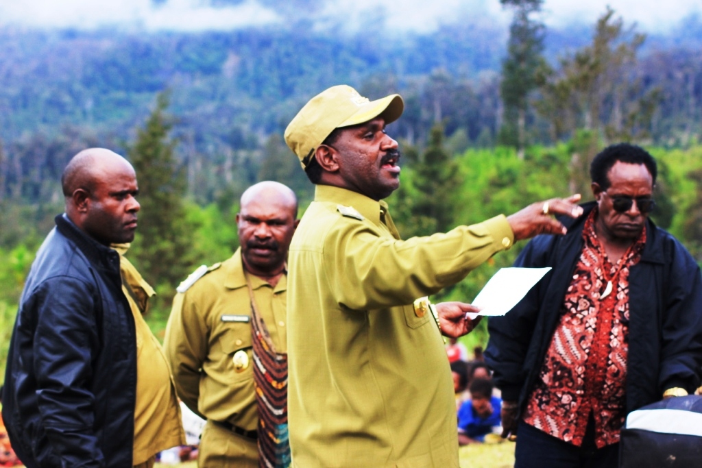 (Beoga, 13/03/2015) Bupati Puncak Willem Wandik, S.E., M.Si melakukan kunjungan kerja ke Distrik Beoga pada hari Jumat 11.00 waktu setempat. Bertolak dari Bandara Aminggaru Ilaga, Bupati yang diiringi rombongan Asisten Bupati, Kepala DPU, Plh. Kepala Dinas Keuangan, Kepala Bappeda, dan jajaran staf, Wakil Ketua II DPRD Kabupaten Puncak Alus Murib, dan Direktur PT. Cenderawasih Emas Frans Manibui dan Kepala BPD Papua Cabang Timika yang turut membersamai dalam rombongan bermaksud memantau pembangunan infrastruktur di Distrik Beoga.