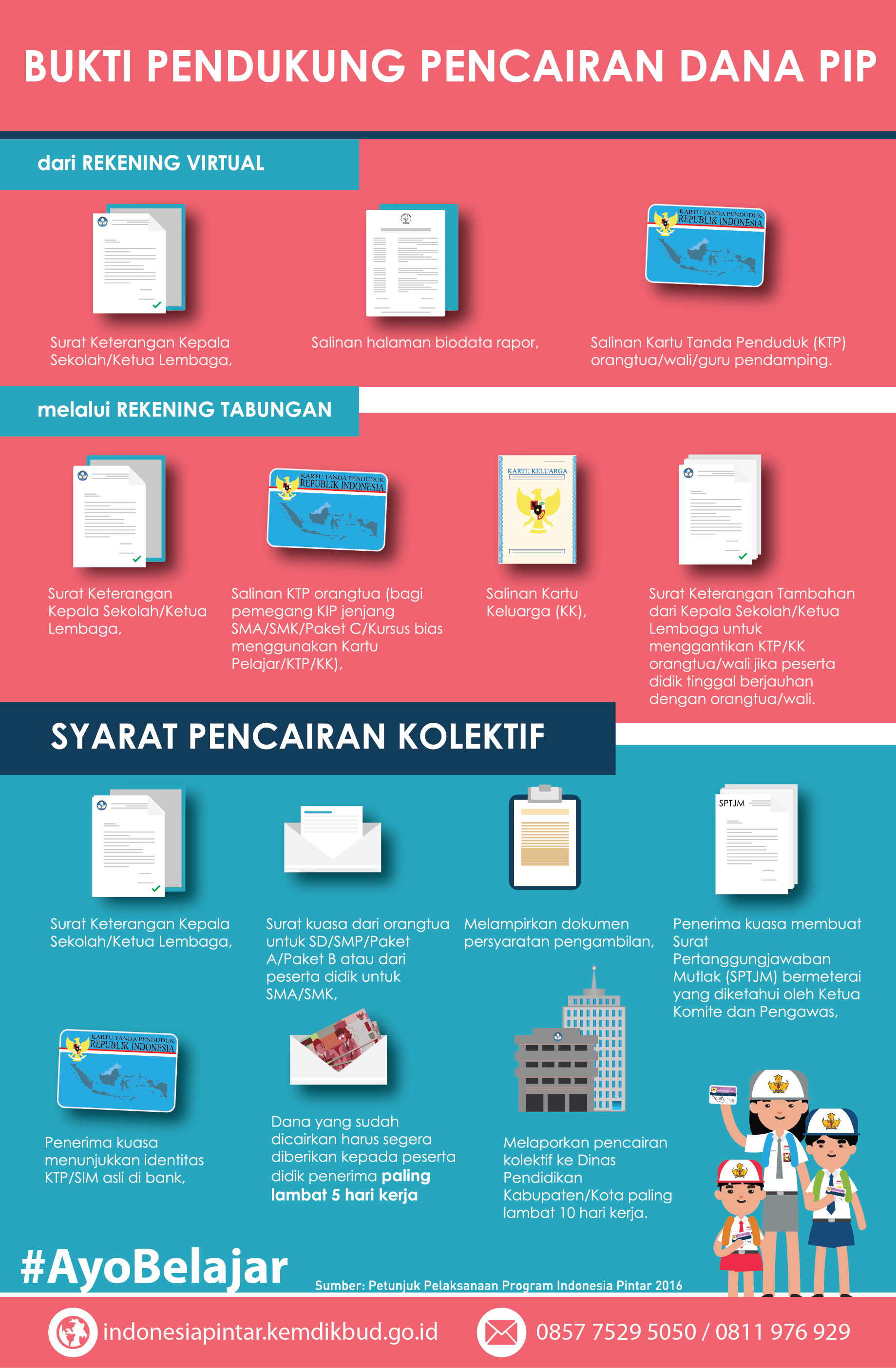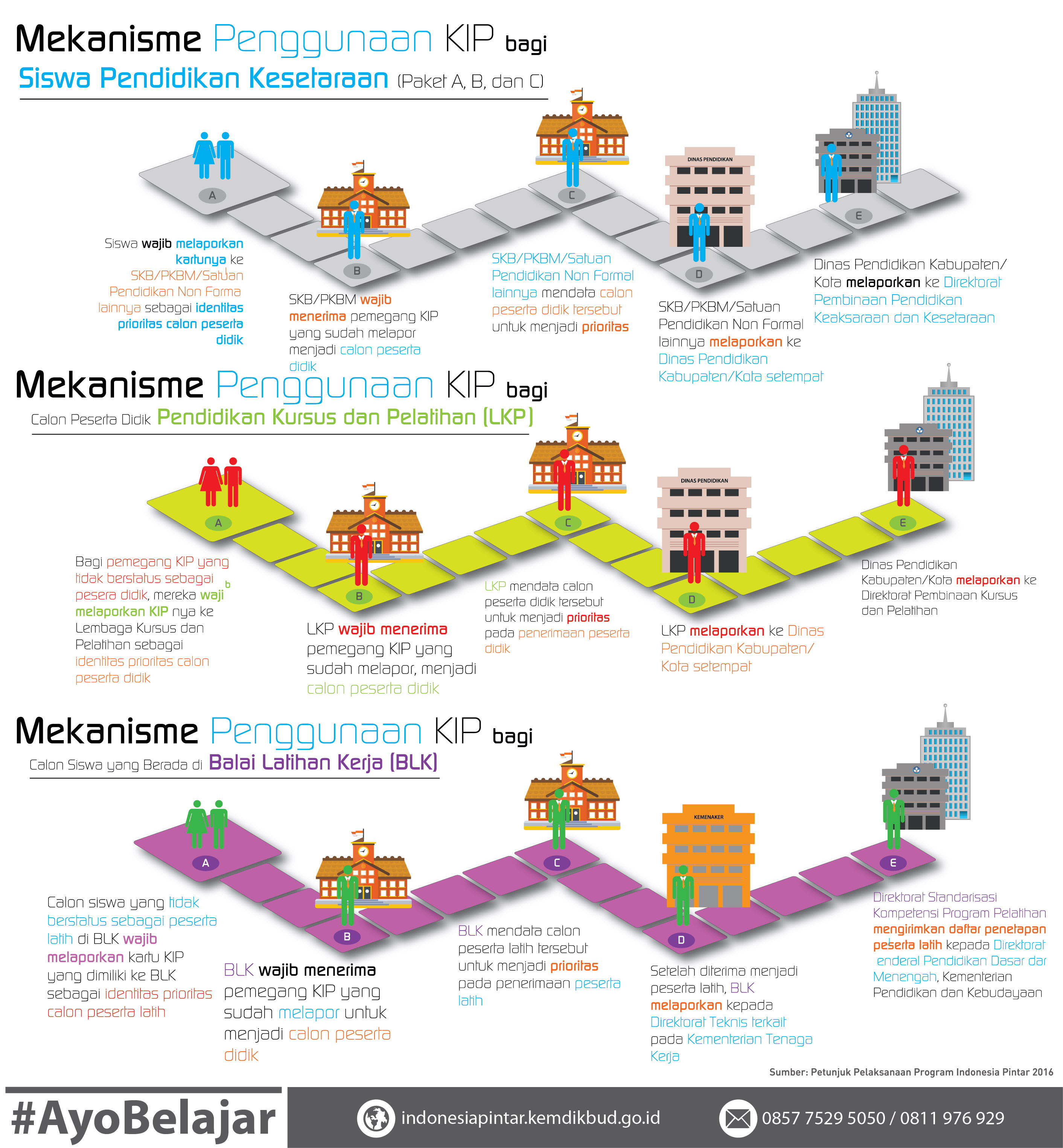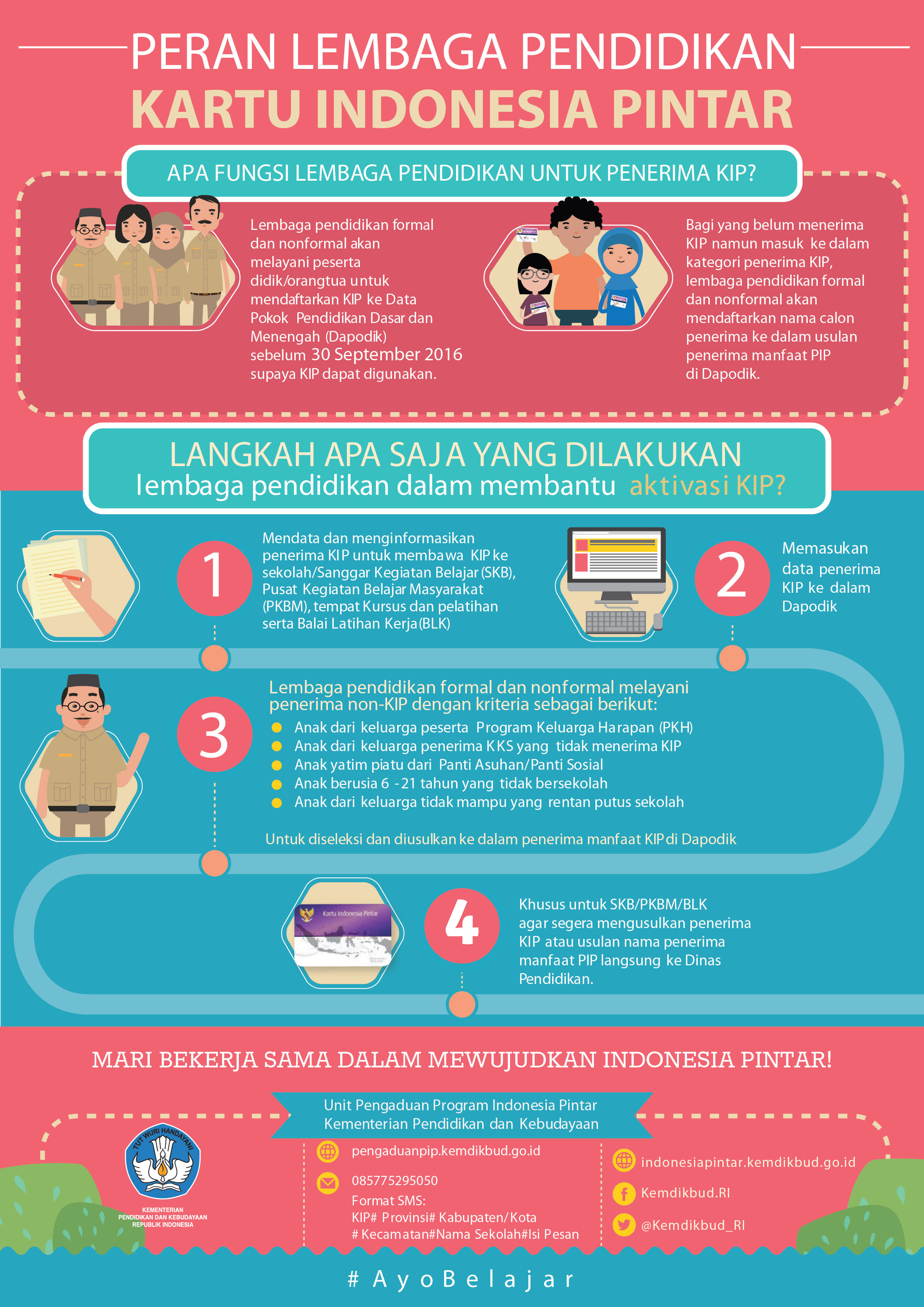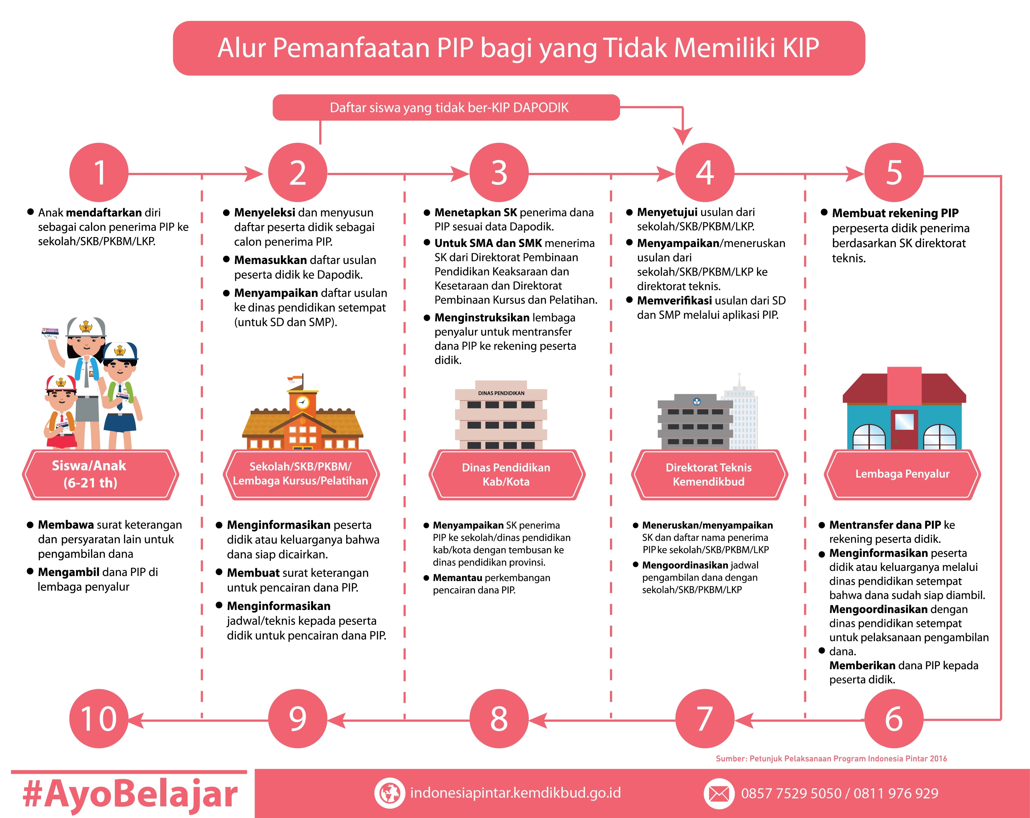 Informasi, pertanyaan dan pengaduan seputar PIP dan KIP dapat dilakukan melalui laman indonesiapintar.kemdikbud.go.id, hotline (021) 5703303, 57903020, SMS 0857 7529 5050 dan 0811 976 929.